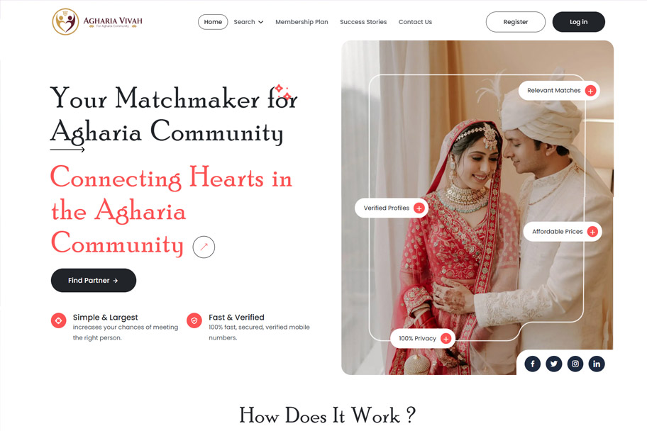 AghariaVivah.com is a trusted matrimonial platform dedicated to connecting individuals from the Agharia community. With a commitment to cultural values, genuine profiles, and secure matchmaking, we aim to simplify the journey of finding the right life partner.
