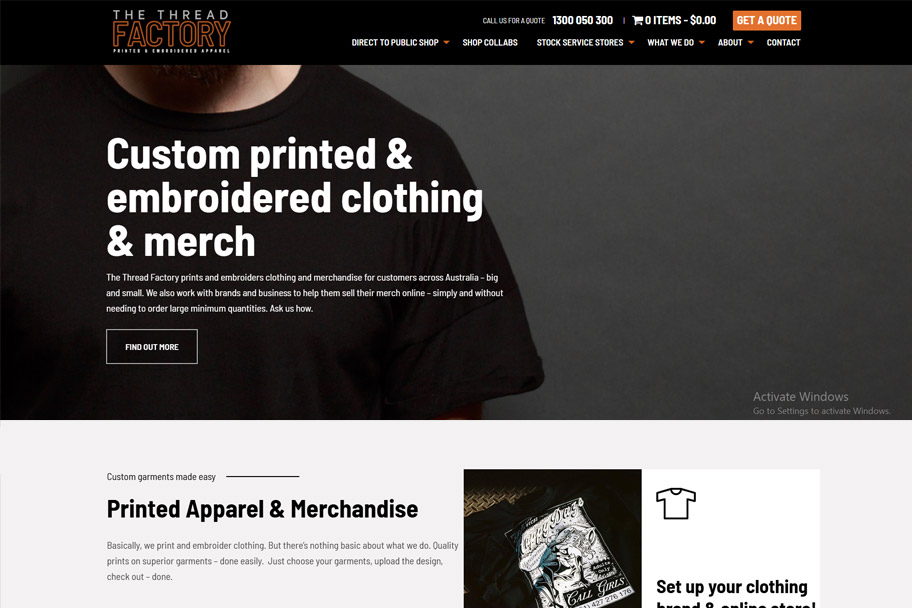 The Thread Factory prints and embroiders clothing and merchandise for customers across Australia – big and small. We also work with brands and business to help them sell their merch online – simply and without needing to order large minimum quantities. Ask us how.